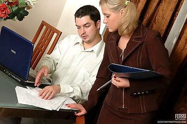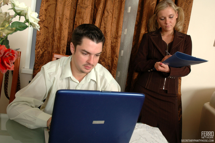 Unabashed secretary in barely black pantyhose getting banged in doggystyle